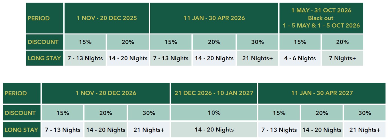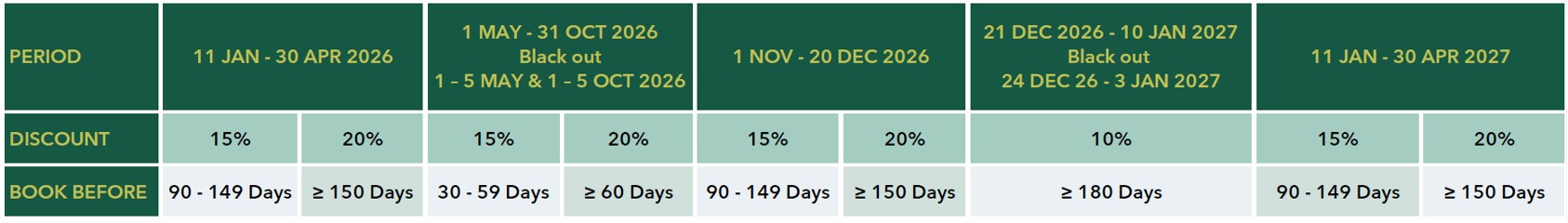 The earlier you book, the more you save! Take advantage of Pimalai’s Koh Lanta resort deals and Thailand hotel promotions. Book in advance and save up to 30% — valid for stays until October 31, 2027.