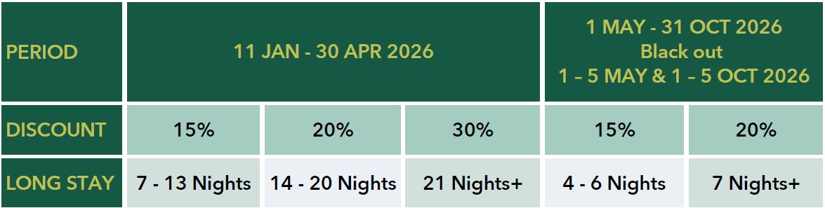 Make the most of your time in Krabi. Stay longer and enjoy additional privileges designed to help you fully immerse yourself in the beauty of Koh Lanta and the surrounding Andaman Sea.